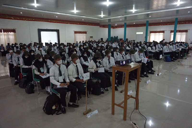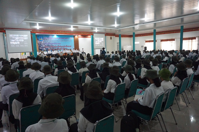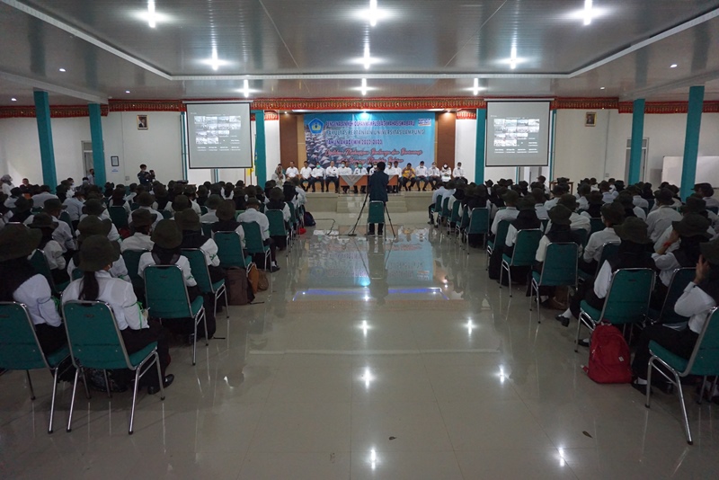 1.545 mahasiswa baru Fakultas Pertanian Universitas Lampung (FP Unila) mengikuti kegiatan PKKMB (Pengenalan Kehidupan Kampus bagi Mahasiswa Baru) tahun akademik 2022/2023, dilakuakan secara hibrid, di aula pertanian, Kamis 18 Agustus 2022.