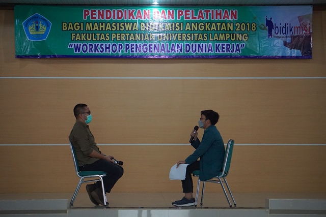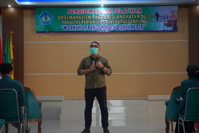 Fakultas Pertanian Universitas Lampung (FP Unila) menyelenggarakan pendidikan dan pelatihan bagi Mahasiswa Bidikmisi angkatan 2018 dengan tema Pengenalan Dunia Kerja, Senin (25/10/2021) di aula pertanian FP Unila.