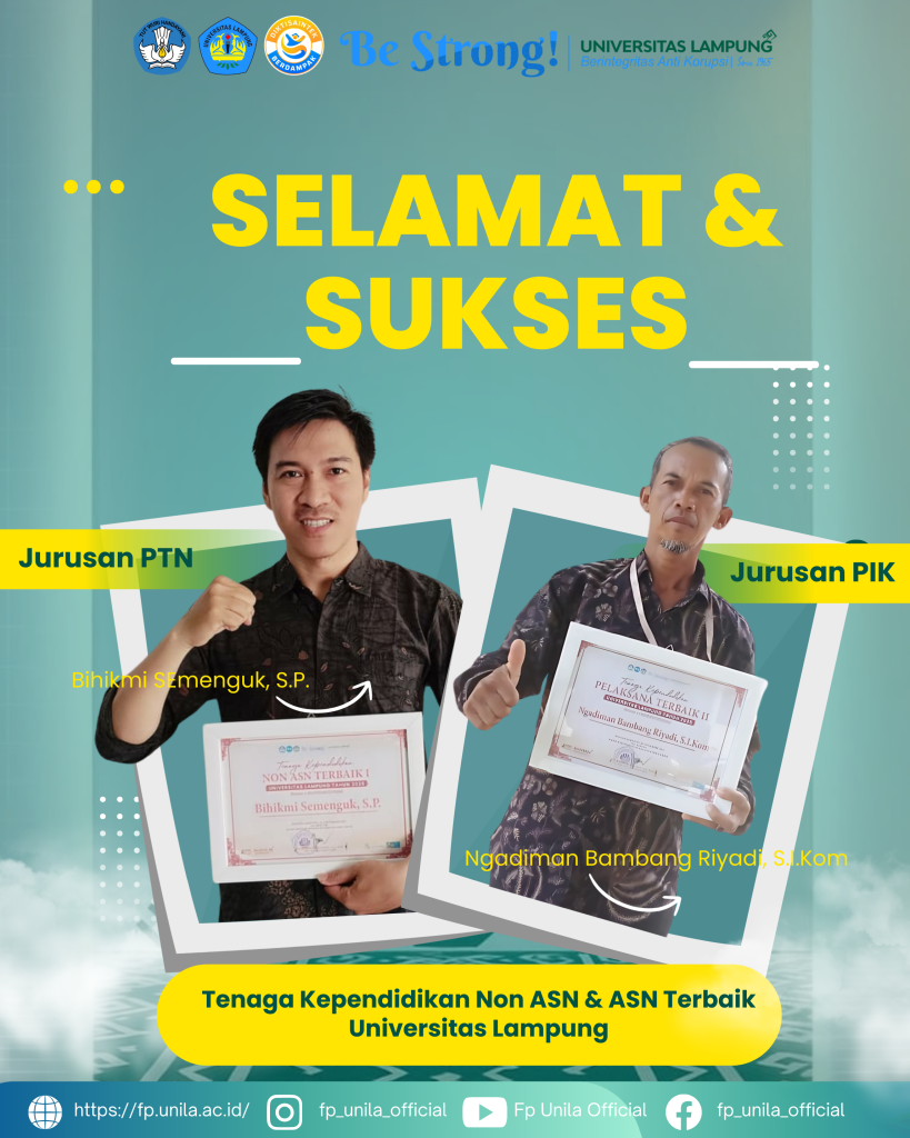 Fakultas Pertanian Universitas Lampung kembali menorehkan prestasi membanggakan dalam rangkaian acara Dies Natalis Universitas Lampung ke-60. Selain meraih penghargaan sebagai Juara Terbaik I Website Fakultas, dua tenaga kependidikan dari Fakultas Pertanian juga berhasil mendapatkan apresiasi sebagai Tenaga Kependidikan Non ASN & ASN Terbaik Universitas Lampung 2025.