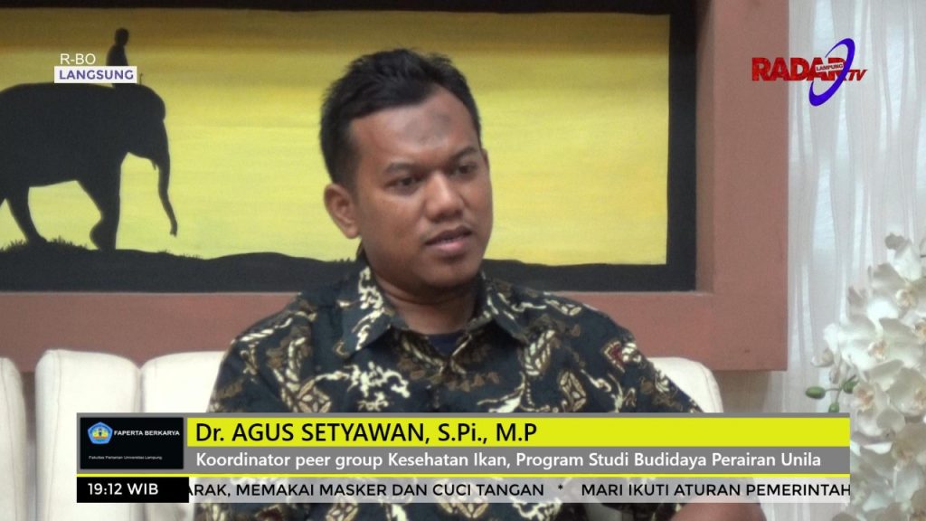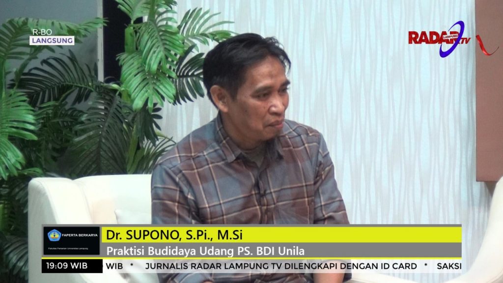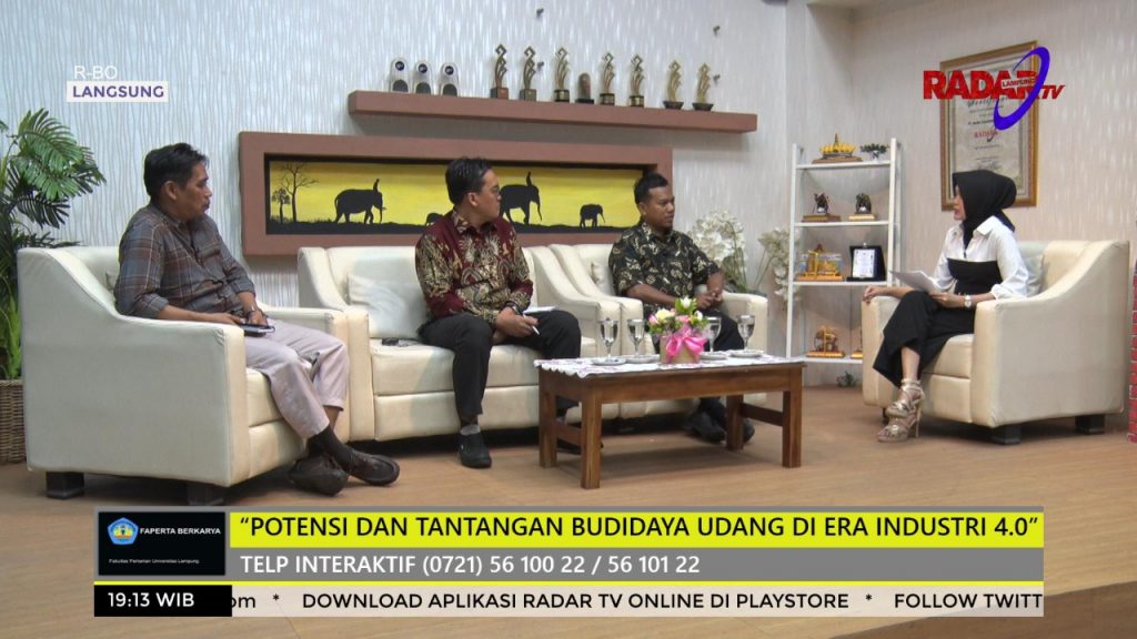 Fakultas Pertanian Universitas Lampung Jurusan Agroteknologi (AGT FP Unila), melalui Dr. Supono, S.Pi., M.Si., Dr. Yudha T. Adiputra, S.Pi., M.Si., dan Dr. Agus Setyawan, S.Pi., M.P., melaksanakan program siaran Faperta Berkarya dengan tema Potensi dan Tantangan Budidaya Udang di Era Industri 4.0, Kamis 3 November 2022, Radar Lampung Televisi.