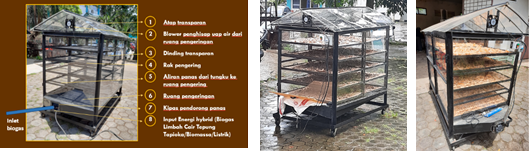 Sementara Produk hasil pertanian dapat dikeringkan pada pengering hybrid, dimana sumber energinya dari matahari dan tambahan bahan bakar dari biogas, listrik atau biomassa.