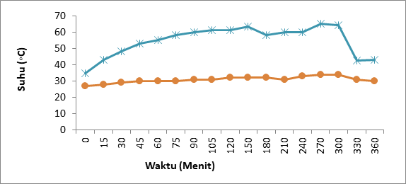 (Gambar 4. Grafik suhu pengeringan; adalah suhu ruang pengeringan; suhu lingkungan).