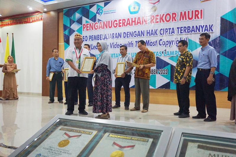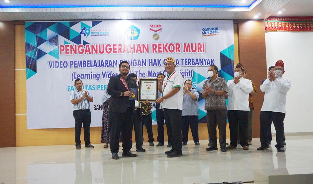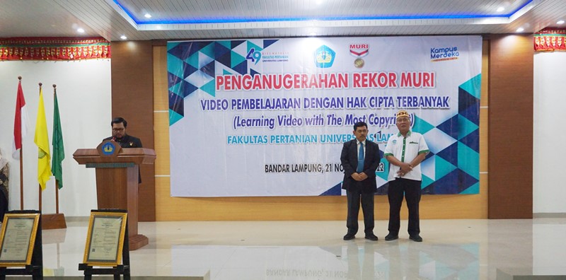 Fakultas Pertanian Universitas Lampung (FP Unila) kembali pecahkan Museum Rekor Dunia Indonesia (MURI) terkait vidio pembelajaran dengan hak cipta terbanyak. Ini merupakan kali ke VI nya FP Unila menorehkan catatan MURI dibidang akademik. Penobatan tersebut bersamaan dengan perayaan hari jadi FP Unila yang ke-49, Senin 21 November 2022, di aula pertanian FP Unila.