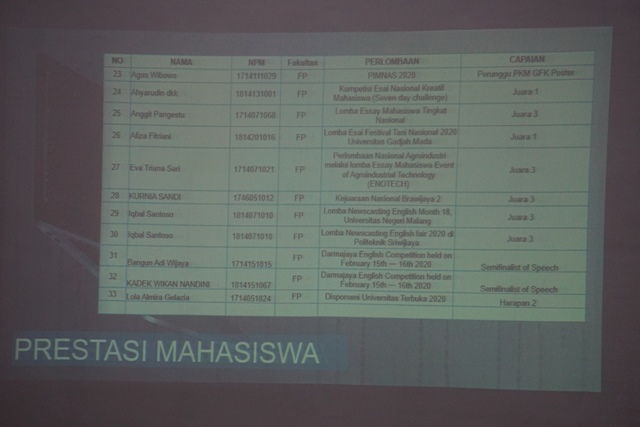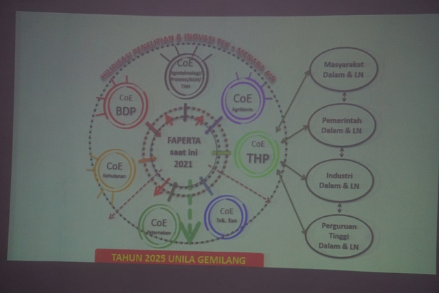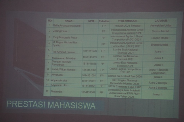 Dalam kunjungan Rektor dan jajaran, Dekan Fakultas Pertanian Unila Prof. Dr. Ir. Irwan Sukri Banuwa, M.Si., melaporkan kerja Fakultas Pertanian, ada sepuluh poin yang disampaikan :