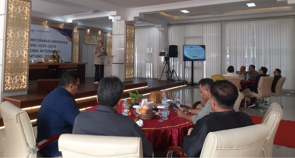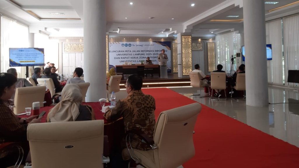 Bandar Lampung, 18 Februari 2025 – Universitas Lampung (Unila) hari ini menggelar acara peluncuran Peta Jalan Reformasi Birokrasi 2025-2029 dan Rapat Kerja Zona Integritas Unila 2025 di Student Center Fakultas Ekonomi dan Bisnis (FEB) Universitas Lampung. Acara ini dibuka secara resmi oleh Wakil Rektor Bidang Keuangan dan Umum Universitas Lampung, menandai komitmen institusi dalam mendorong reformasi birokrasi yang bersih, transparan, dan berorientasi pelayanan.