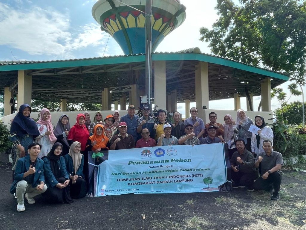 Dalam rangka Hari Menanam Sejuta Pohon Sedunia”, Himpunan Ilmu Tanah Indonesia (HITI) Komda Lampung mengadakan penanaman pohon bekerjasama dengan Fakultas Pertanian Universitas Lampung (Unila) dan BPDAS Way Sekampung Way Seputih Provinsi Lampung. Penamaan dilakukan pada hari Sabtu, 17 Februari 2024, bertempat di Songgo Langit Laboratorium Lapang Terpadu Fakultas Pertanian Unila.