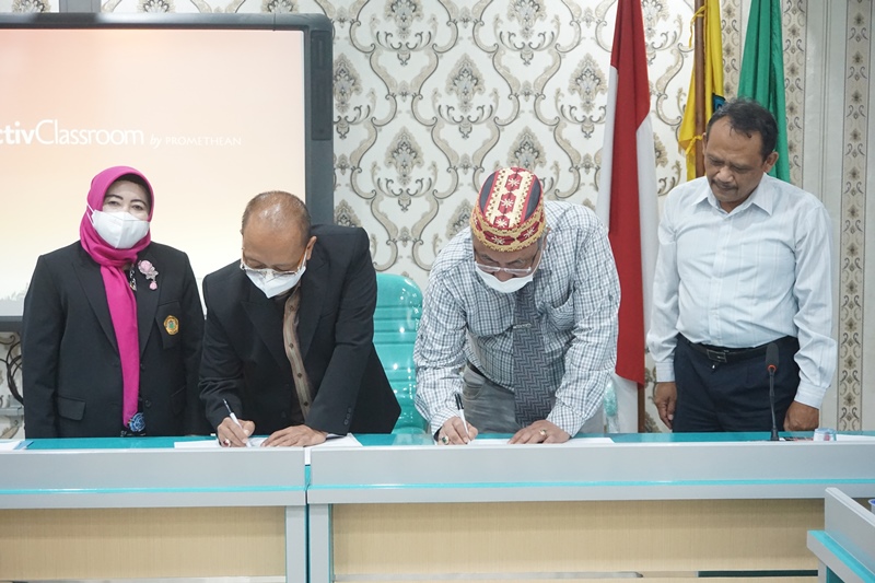 Penandatanganan MoA ditandatangani oleh Dekan FP Unila, Prof. Dr. Ir. Irwan Sukri Banuwa, M.Si., dan Direktur Pascasarjana Universitas Sultan Ageng Tirtayasa, Dr. Aan Asphianto, S.Si., SH., MH.
