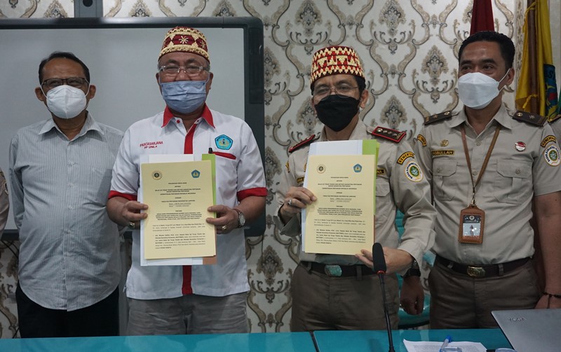 Balai Uji Terap dan Metode Karantina Pertanian Badan Karantina Pertanian Kementerian Pertanian RI dengan Fakultas Pertanian Universitas Lampung (FP Unila) menandatangani perjanjian kerja sama (MoU) tentang kerjasama pengembangan sumber daya manusia, ilmu pengetahuan dan teknologi dalam rangka pembanguanan teknologi pertanian melalui magang dan kerja praktik mahasiswa, penelitian, dan pengabdian masyarakat, Senin (7/3/2022), diruang sidang dekanat FP Unila.