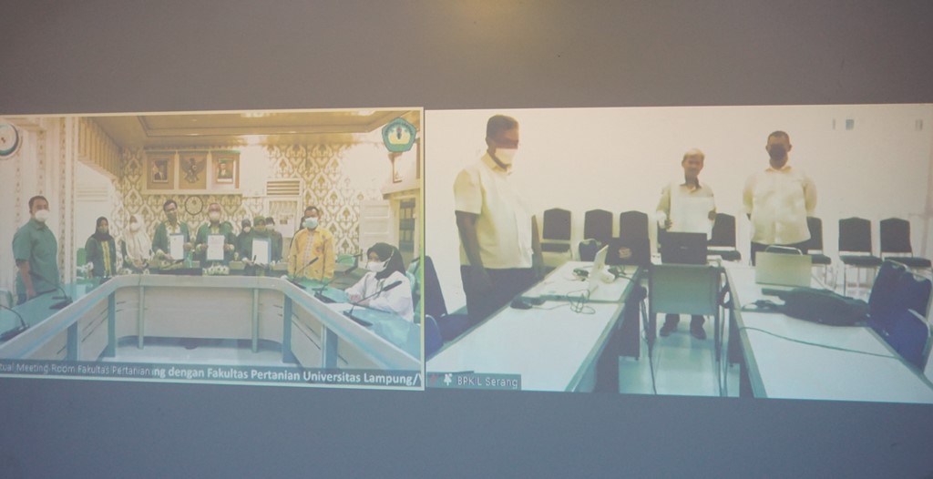 Fakultas Pertanian Universitas Lampung (FP Unila) melaksanakanan penandatanganan perjanjian kerjasama dengan Balai Pengujian Kesehatan Ikan dan Lingkungan (BPKIL) Serang, dilaksanakan secara virtual zoom meeting, Kamis (14/4/2022), diruang sidang dekanat FP Unila.