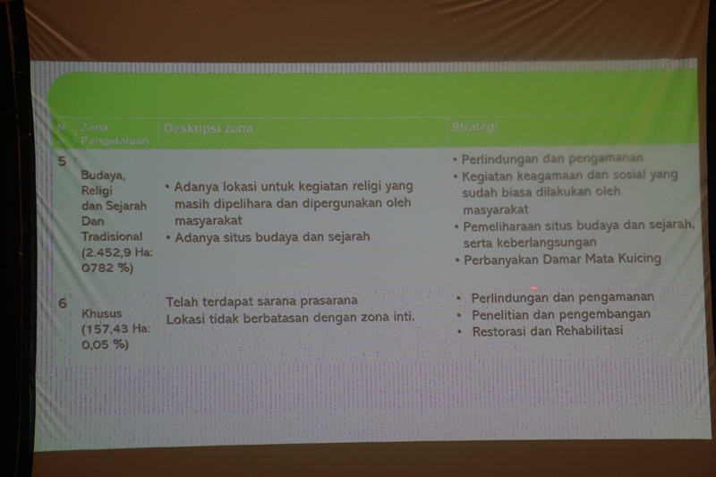 Dihadiri oleh Kepala Dinas Kehutanan Provinsi Lampung, Ir. Yayan Ruhyansyah, M.Si., Plt. Kepala Balai Besar TNBBS Ismanto, S.Hut., M.P., Direktur Pengelola Kawasan Konsevasi yang diwakili oleh Risdianto, S.P., M.Si., dan Kabid Perencanaan Bapeda A. Lian Nurzen.