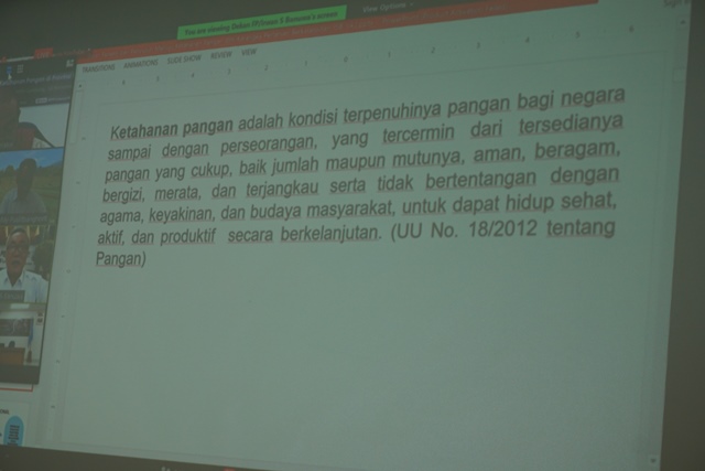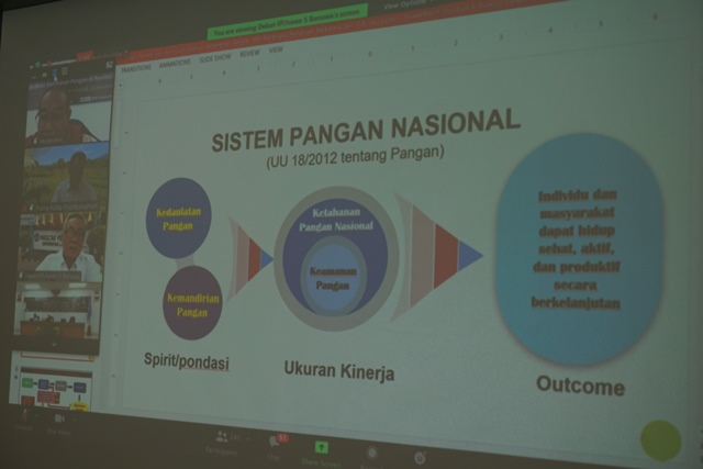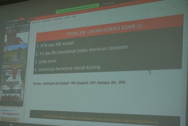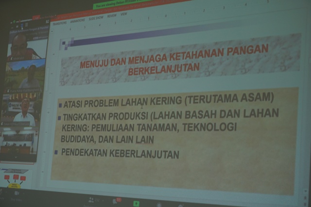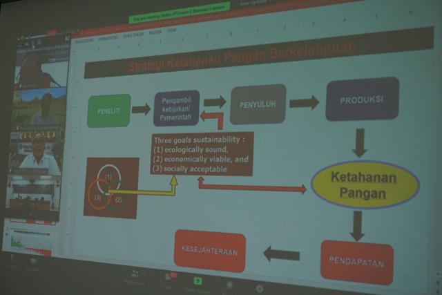 Pada kesempatannya, Dekan Fakultas Pertanian Unila memaparkan poin tentang Peran Peneliti dan Penyuluh Menuju Ketahanan Pangan, Kerangka Pertanian Berkelanjutan.