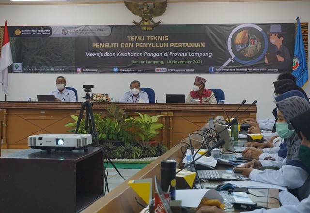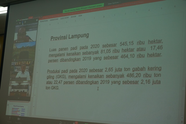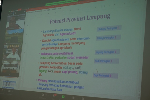 Fakultas Pertanian Universitas Lampung (FP Unila) melalui Prof. Dr. Ir. Irwan Sukri Banuwa, M.Si., menjadi narasumber dalam gelaran Temu Teknis Peneliti dan Penyuluhan Pertanian dengan tema Mewujudkan Ketahanan Pangan di Provinsi Lampung, kegitan ini diselenggarakan oleh BPTP ( Balai Pengkajian Teknologi Pertanian) Lampung bekerjasama dengan DPW (Dewan Perwakilan Daerah) Perhimpunan Penyuluh Pertanian (Perhiptani) Provinsi Lampung, Rabu (10/11/2021) diselenggarakan secara online dan offline di kantor BPTP Lampung.