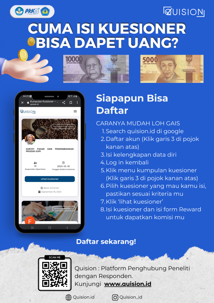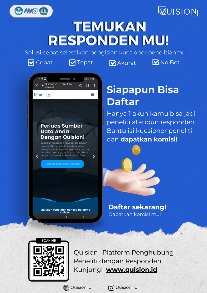 Quision dapat diakses pada laman https://quision.id/ serta instagram dan Tiktok @Quision_id yang tentunya terus membagikan konten edukatif bagi para peneliti. Harapannya platform ini dapat menjadi wadah kolaborasi masyarakat dan peneliti untuk tumbuh bersama perkembangan ilmu pengetahuan. *Bella Amanda Iswahyudi (THP 2020)