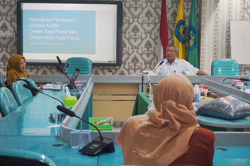 Fakultas Pertanian Universitas Lampung (FP Unila) menggelar rapat koordinasi persiapan visitasi ASIIN Dosen Task Force dan Dosen Non Task Force, Jumat 3 Februari 2023, diruang rapat Dekanat FP Unila.