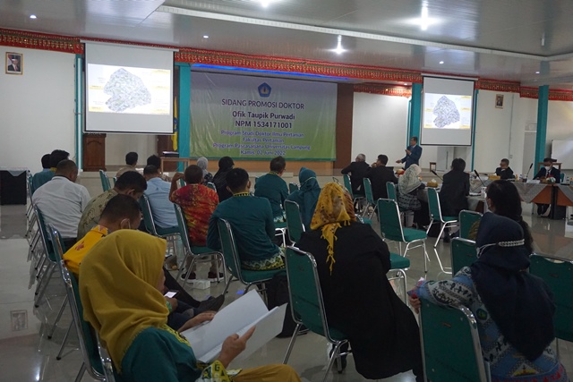 Sidang terbuka promosi doktor diketuai Rektor Unila yang dalam kesempatannya di wakili oleh Dekan FP Unila, Prof. Dr. Ir. Irwan Suklri Banuwa, M.Si.