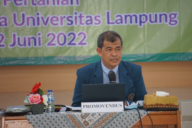 Ketua Penguji Dr. Ir. Slamet Budi Yuwono, M.S. (Selaku Ketua Program Studi Doktor Ilmu Pertanian FP Unila).