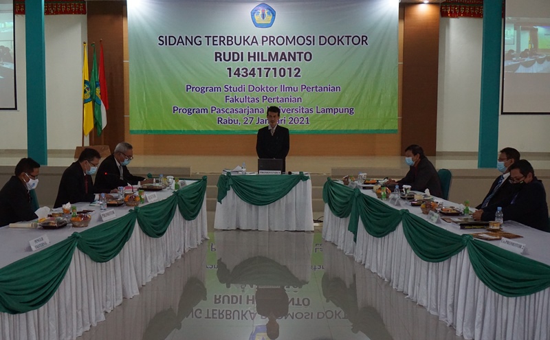 Fakultas Pertanian Universitas Lampung (FP Unila), kembali gelar sidang terbuka promosi doktor ilmu pertanian atas nama Rudi Hilmanto, Npm 1434171012, dengan judul “Pengukuran dan Monitoring Pembentuk Fisik Pesisir Kabupaten Lampung Timur Provinsi Lampung”, bertempat di aula pertanian, Rabu, (27/01/2021).