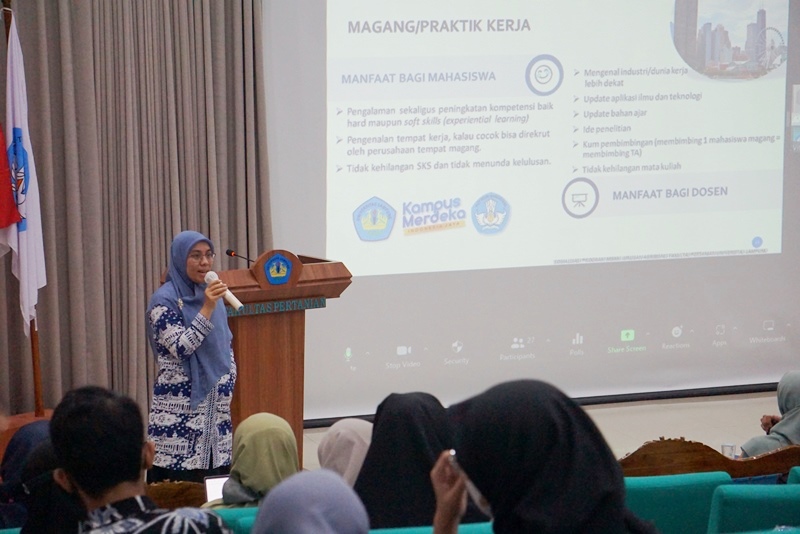 Program Studi Agribisnis Jurusan Agribisnis Fakultas Pertanian Universitas Lampung menggelar kegiatan sosialisasi terkait magang dalam Program Kampus Merdeka Belajar Kampus Merdeka (MBKM) oleh PT. Pupuk Sriwidjaja Palembang. Jumat, 10 Februari 2023, digedung A1 Dekanat Fakultas Pertanian Unila.
