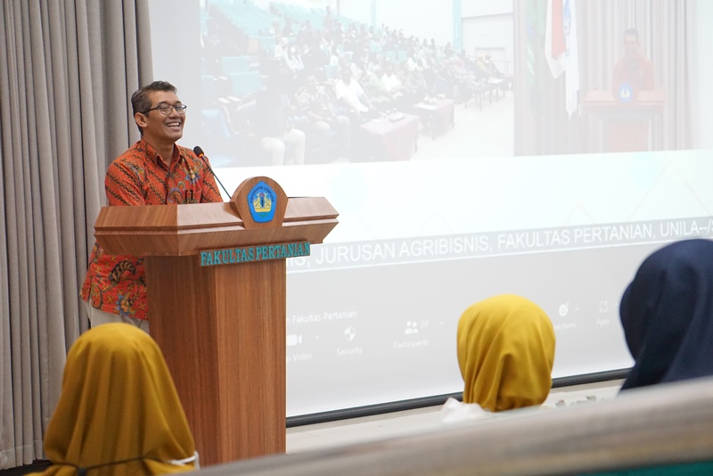 - Dr. Novi Rosanti, S.P., M.P. (selaku Ketua Program Studi Agribisnis Jurusan Agribisnis FP Unila), materi yang disampaikan berjudul “Best Practice Implementasi MBKM PT dan DUDI”.
