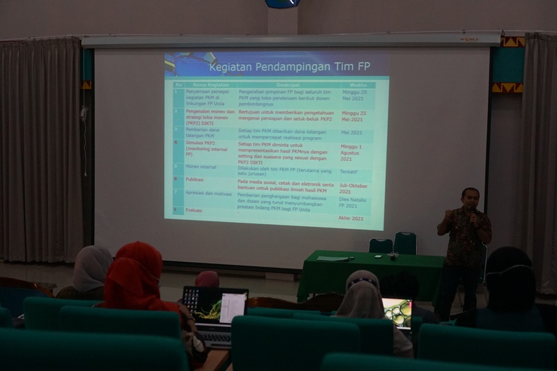 “Sebetulnya reputasi tim PKM FP Unila bukan ditingkat fakultas, tapi saya sudah sangat faham beliau-beliau itu reputasinya sudah ditingkat Universitas dan bahkan ditingkat nasional, oleh karena itu dengan reputasi yang luar biasa ini khusus untuk tim pembina, maka kita minta untuk keihlasannya, kerelaannya untuk turun membina adik-adik mahasiswa Fakultas Pertanian Unila untuk berprestasi ditingkat nasional“, ujar Prof. Dr. Irwan S Banuwa pada acara Kiat PKM Menuju Pimnas, bertempat di gedung A1 dekanat FP Unila, Selasa (25/05/2021).