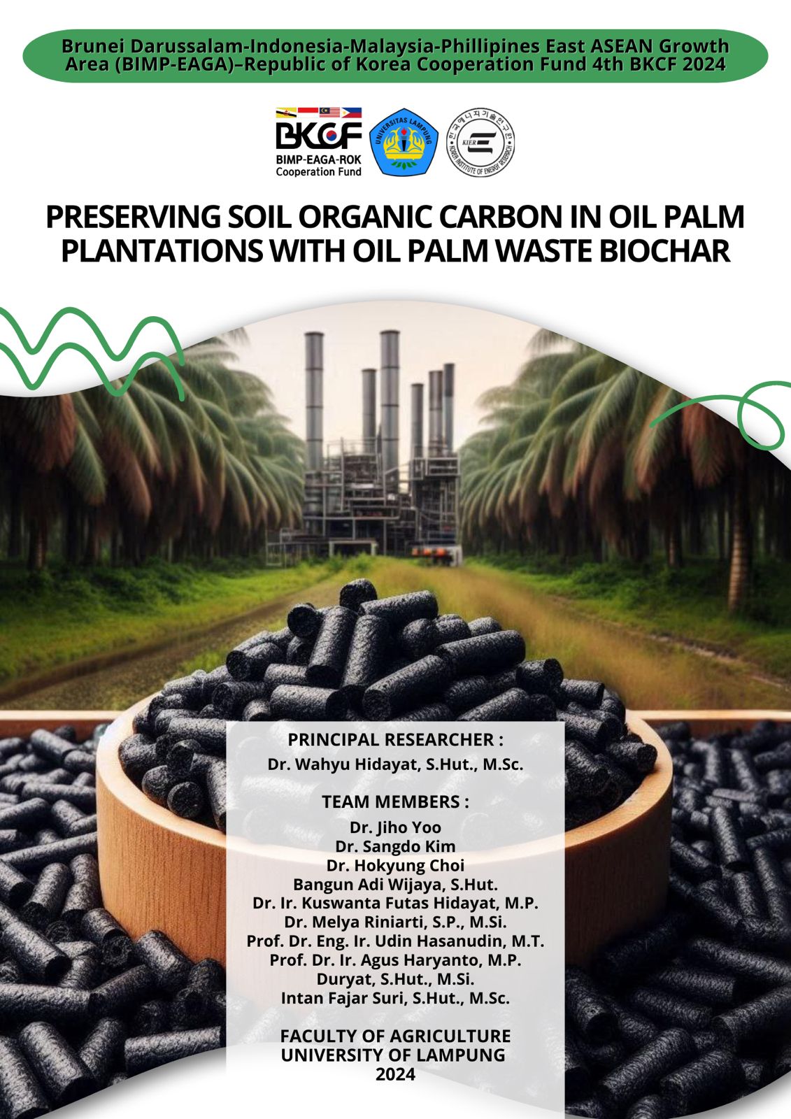 Proyek ini dipimpin oleh Dr. Wahyu Hidayat dari Fakultas Pertanian, Universitas Lampung, bersama tim yang terdiri dari Dr. Ir. Kuswanta Futas Hidayat, M.P., Dr. Melya Riniarti, S.P., M.Si., Prof. Dr. Eng. Ir. Udin Hasanudin, M.T., Prof. Dr. Ir. Agus Haryanto, M.P., Duryat, S.Hut., M.Si., dan Intan Fajar Suri, S.Hut., M.Sc. Tim ini juga bekerja sama dengan Bangun Adi Wijaya, alumni Universitas Lampung yang kini berkarier di Korea Institute of Energy Research (KIER), Daejeon, Korea Selatan. Tim dari KIER, yang terdiri dari Dr. Jiho Yoo, Dr. Sangdo Kim, dan Dr. Kokyung Choi, akan memberikan dukungan teknis dan keilmuan untuk memastikan keberhasilan implementasi teknologi di Indonesia.