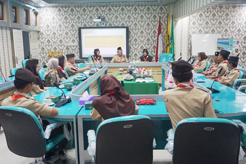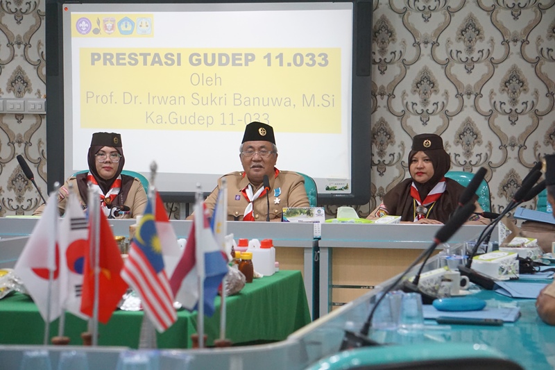 Ketua Gugus Depan Bandar Lampung 11-033, Prof. Dr. Ir. Irwan Sukri Banuwa, M.Si., menyampikan Capaian Prestasi Gudep 11.033 kepada Tim Assesor Gugus Depan Kwarcab Kota Bandar Lampung, diantaranya adalah;