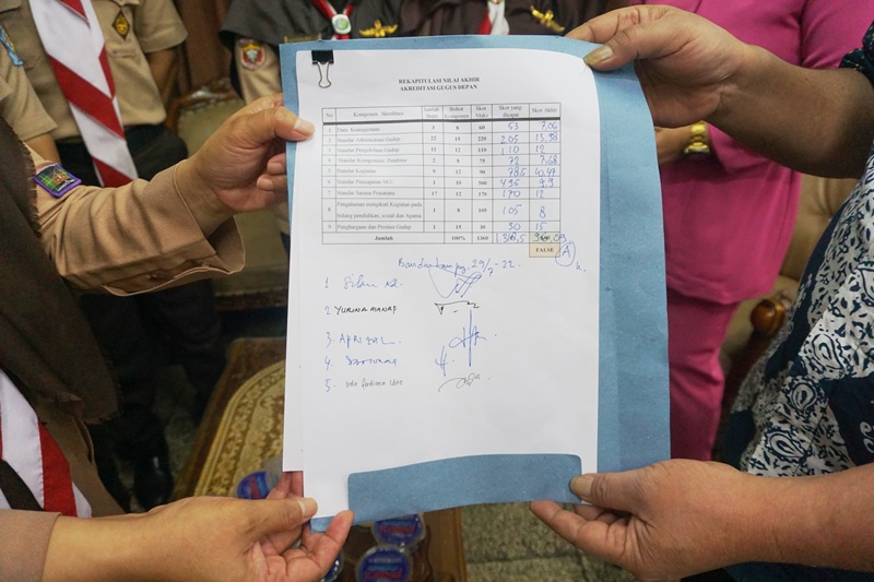 Berdasarkan hasil rekapitulasi nilai akhir akreditasi Gugus Depan 11.033 – 11.034 Universitas Lampung mendaptkan nilai A dengan total score penilaian 96,09.