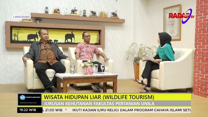 Jurusan Kehutanan Fakultas Pertanian Universitas Lampung (FP Unila) melalui Dr. Gunardi Djoko Winarno dan Dian Iswandaru, M.Sc., melaksanakan program siaran Faperta Berkarya (Fakultas Pertanian Berkarya) di Radar Lampung Televisi dengan topik Wisata Hidupan Liar (Wildlife Tourusn), Kamis, 12 Januari 2023.
